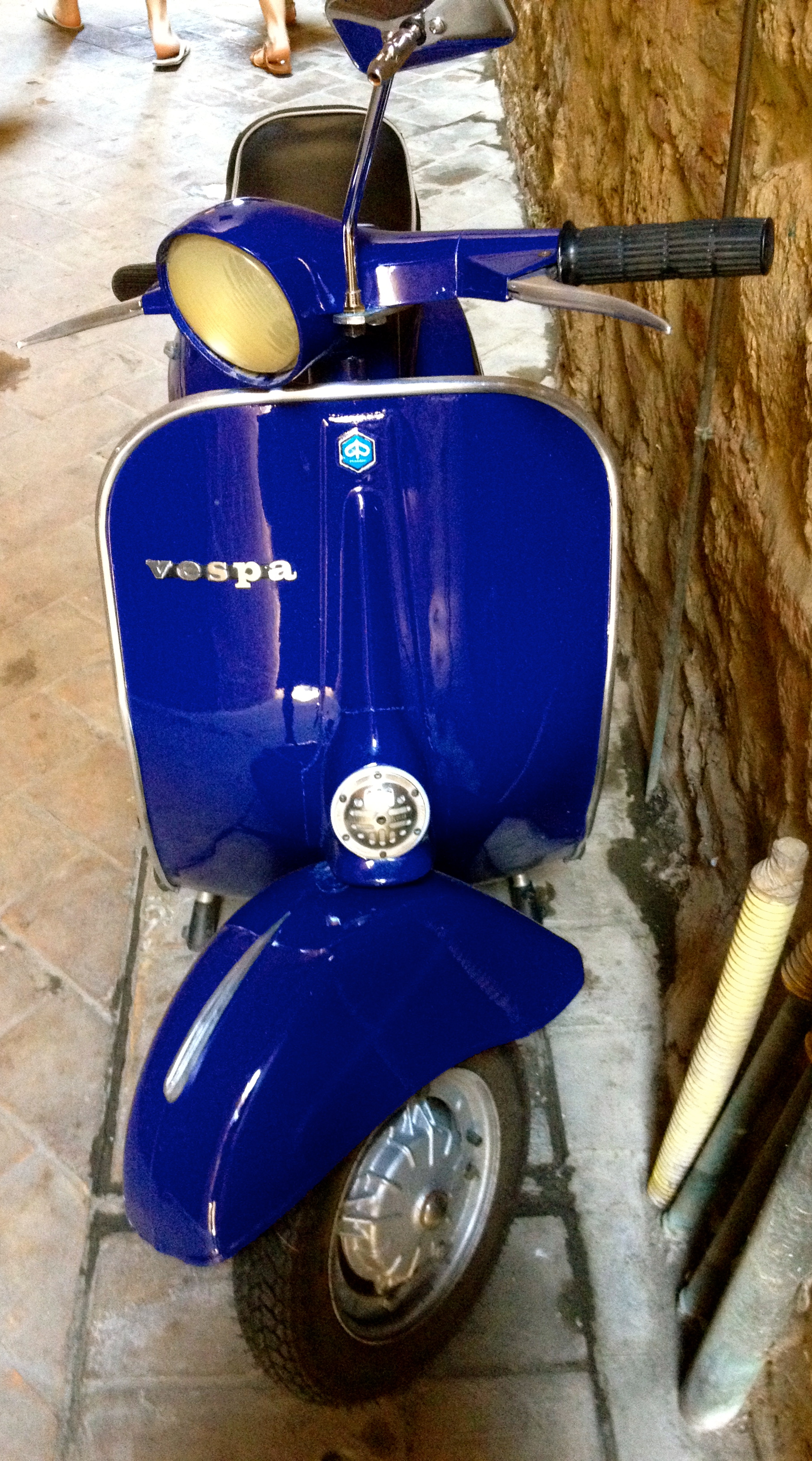 We have now made our way to Italy, so it seems appropriate to write about their beloved and iconic Vespas. I have actually been collecting photos of these lovable shiny scooters in Paris and around France over the years, and now that I am in their homeland, I am thinking that it is time do a little poetic waxing on the subject.